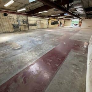 This 4,600 square foot project required extensive surface preparation to ensure the new coating would perform as expected. We performed comprehensive grinding across the entire area to: