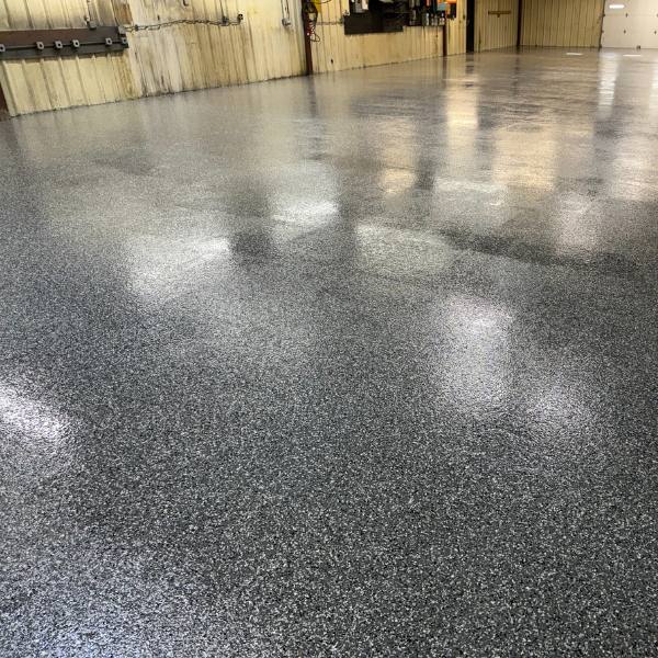 The final result is a manufacturing floor that not only looks professional but is built to last. The epoxy flake coating provides the durability this facility needs, while maintaining a clean, attractive appearance that enhances their facility.