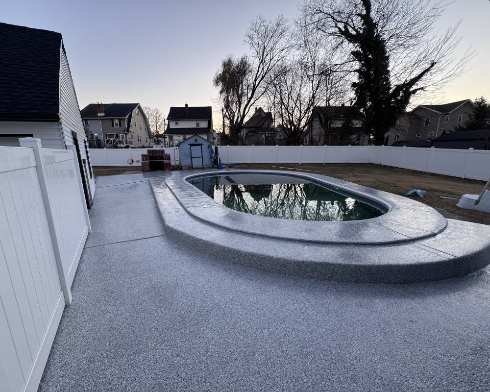 - Pool deck resurfacing with our premium flake system